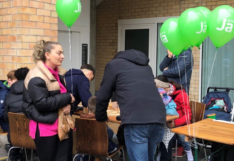 Mit Blick auf die Abstimmung am 24. November 2024 in Cham präsentierten Mitarbeiterinnen und Mitarbeiter der Firma G. Baumgartner AG die Pläne für die Solaranlage. Zudem bastelten Lehrlinge mit Kindern Insektenhotels und verteilten Ballone.